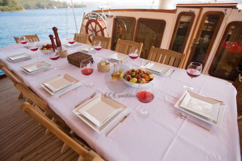 Çift jenaratörü sayesinde 24 Saat kesintisiz klima ( haftalık 1.000 Euro ekstra ) hizmeti de verebilen teknemiz, tüm kabinlerinde Tv yayını da sunarak delüks sınıfın beklentilerini karşılamaktadır.