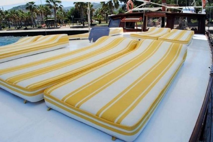 Dalış malzemeleri, Balık tutma malzemeleri, Güneş tenteleri, Güneş yatakları, Güvertede duş, Deniz merdiveni