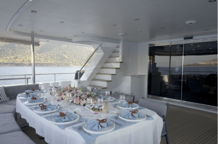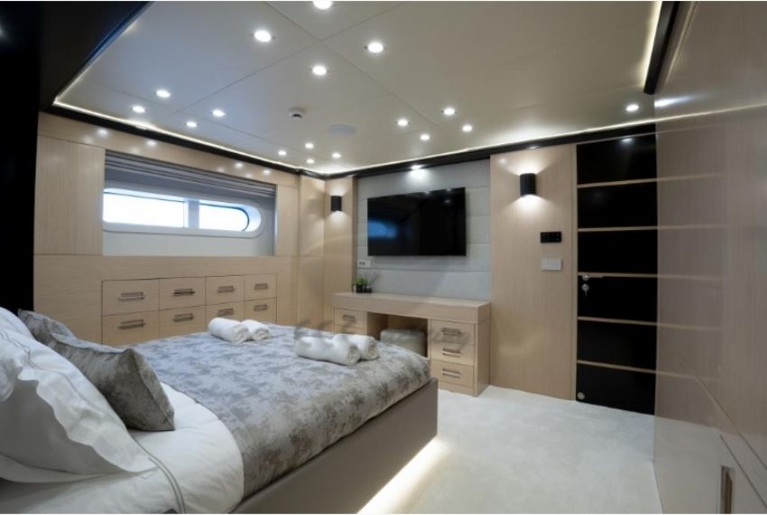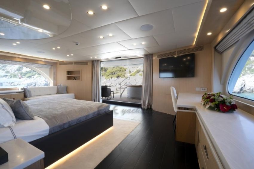 2024 yılında yapılmış olan Princess Melda Motor Yatımızda 6 kabin mevcuttur. 2 Master, 2 Vip ve 2 Twin kabine sahip olan teknemiz lüks ve konforlu tasarımı ile sizlere eşsiz bir deneyim sunacak. 12 Kişi konaklama kapasitesine sahip olan Princess Melda Motor Yatımız 42 metre uzunluğunda ve 8,35 metre genişliğindedir. Arka kısımda bulunan platform ile denize sıfır bir şekilde şezlonglarda güneşlenebilir, istediğiniz gibi eğlenebilirsiniz. Geniş bir arka oturma grubuna, modern ve şık bir dizayna sahip ön alanında bulunan jakuzisinde mükemmel bir deneyim yaşayacaksınız. Fly Bridge bölümünde ayrı bir yaşam alanı mevcuttur. Fly Bridge kısmında kendisine ait barı, yemek masası, oturma alanları ve güneşlenip dinlenebileceğiniz şezlonglar mevcuttur. Teknemizde 1 adet kaptan,1 adet aşçı, 2 adet gemici ve 2 adet hostes olmak üzere 6 mürettebat bulunmaktadır. Princess Melda Motor Yatımızda APA sistemi uygulanmaktadır.