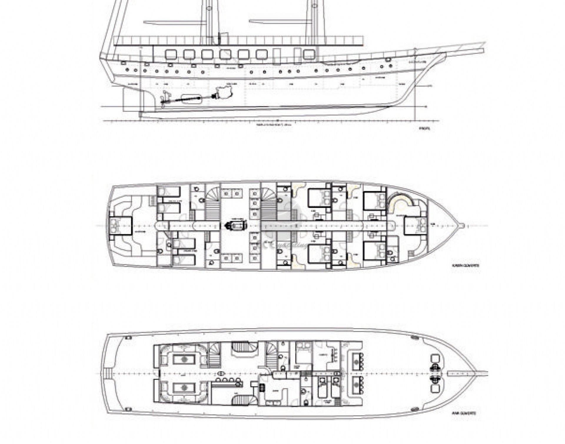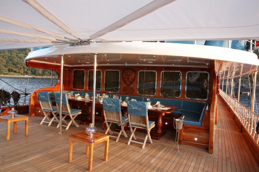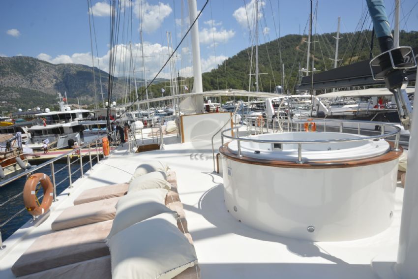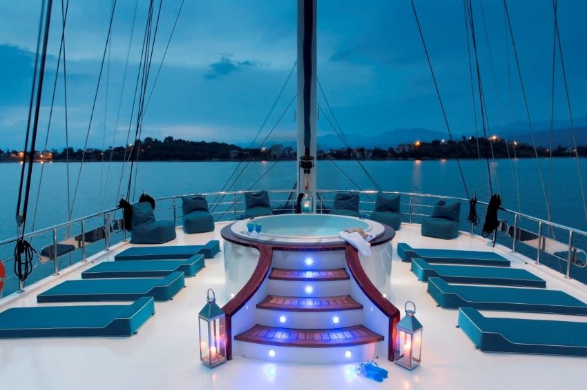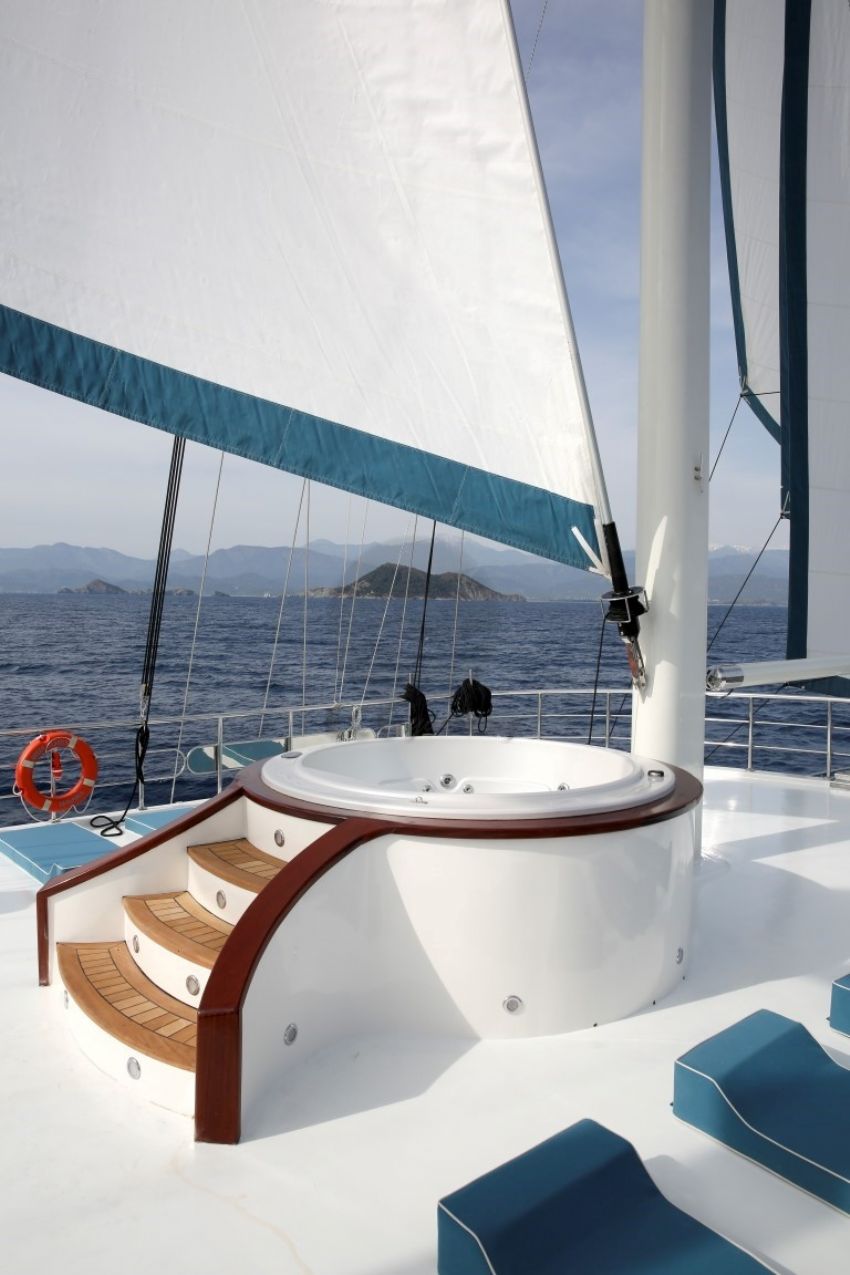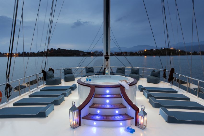 Güvertede jakuzi, Dalış malzemeleri, Balık tutma malzemeleri, Güneş tenteleri, Güneş yatakları, Güvertede duş, Deniz merdiveni