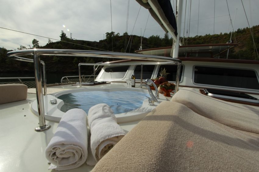 Güvertede Jakuzi, Şnorkel, Balık tutma malzemeleri, Güneş tenteleri, Güneş yatakları, Güvertede duş, Deniz merdiveni