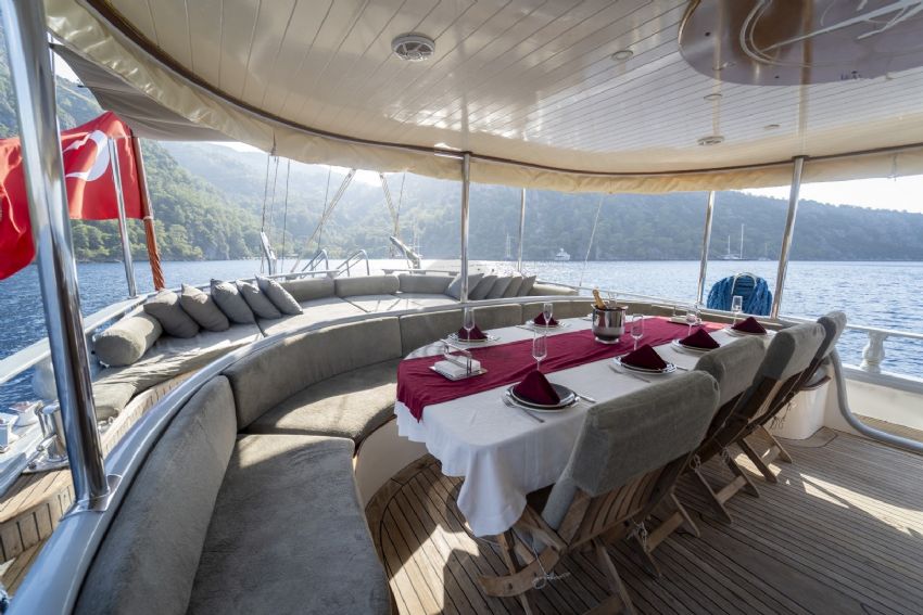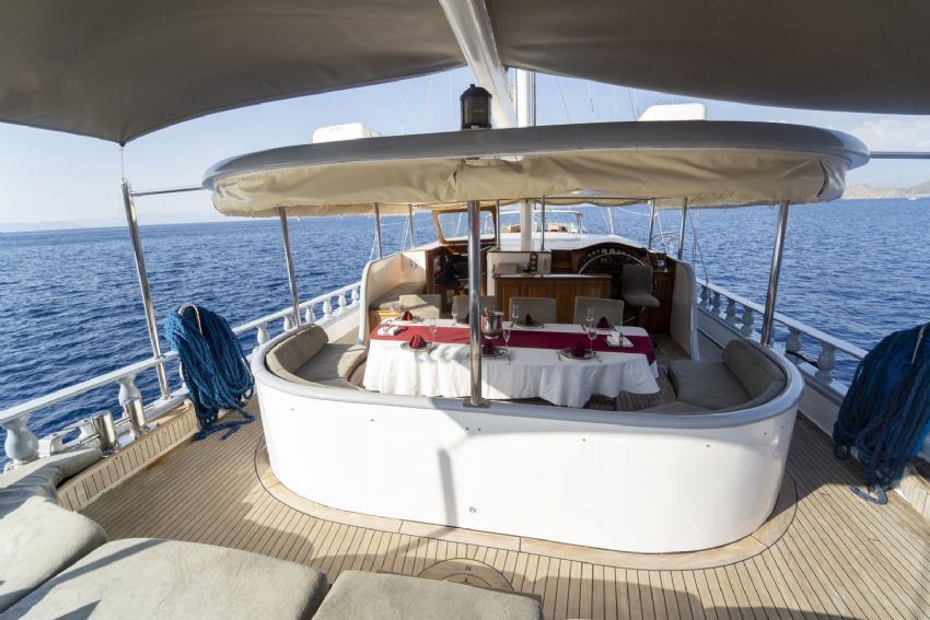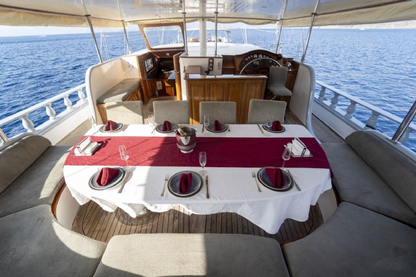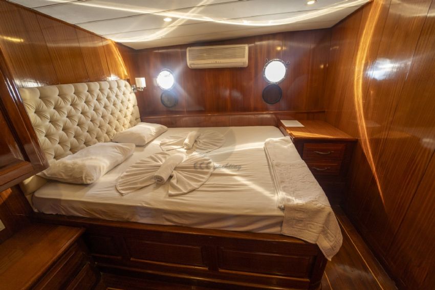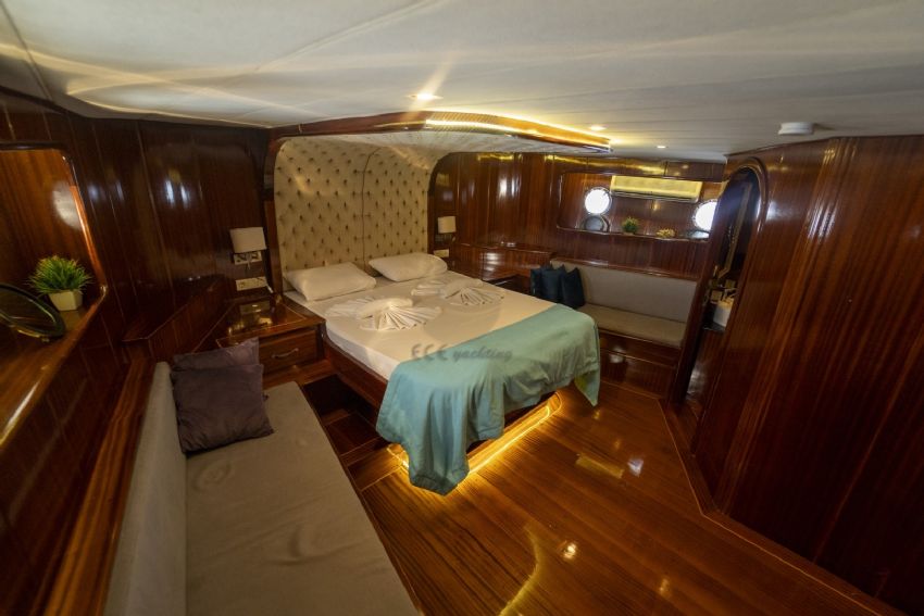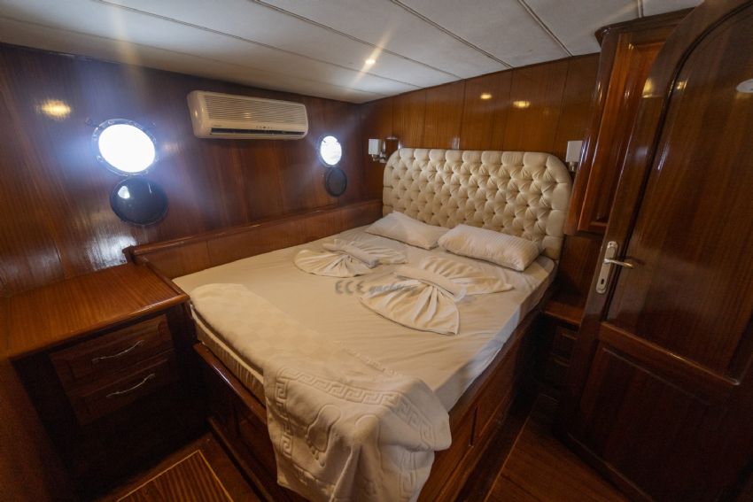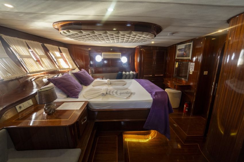 2016 yılında komple revize edilen teknemiz, 30 metre uzunluğunda olup, 6 konforlu kabiniyle mavi yolculuk tatiliniz için hizmetinizdedir. Hava ve deniz şartları uygun olduğunda yelken seyri yapabileceğiniz teknemizde, deneyimli ve güler yüzlü 4 kişilik mürettebatımız hizmet vermektedir. 12 kişiye kadar olan nezih grupları ağırlayabilme kapasitesine sahip teknemiz emsallerine göre daha uygun fiyat aralığı sunmaktadır. QUEEN LILA Yatı.