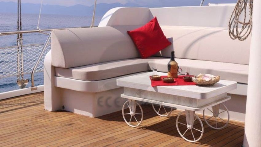 Dalış malzemeleri, Balık tutma malzemeleri, Güneş tenteleri, Güneş yatakları, Güvertede duş, Deniz merdiveni,