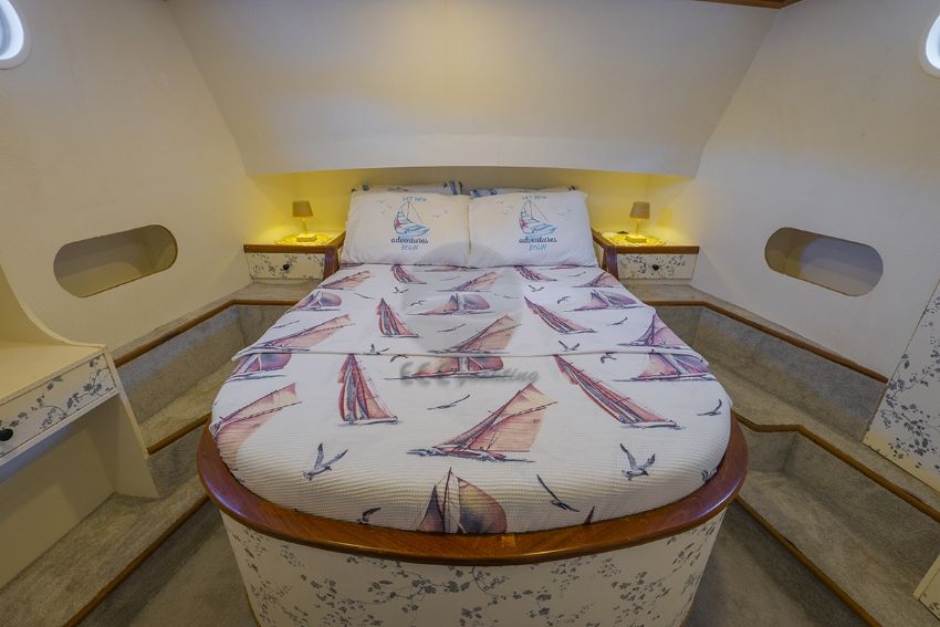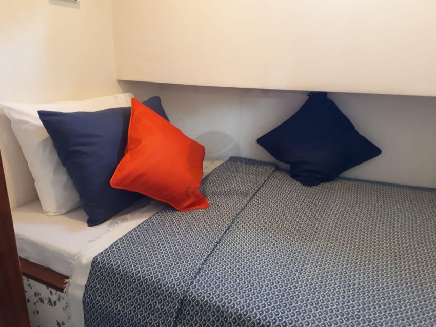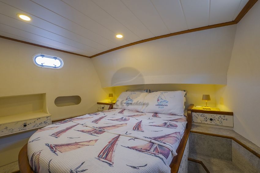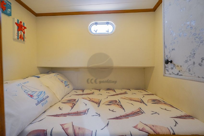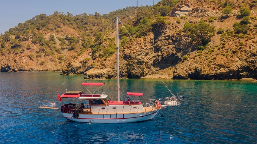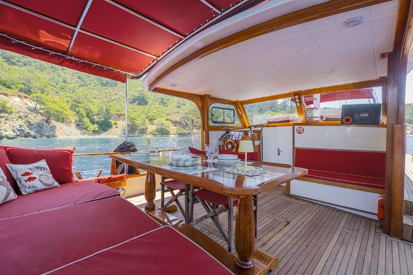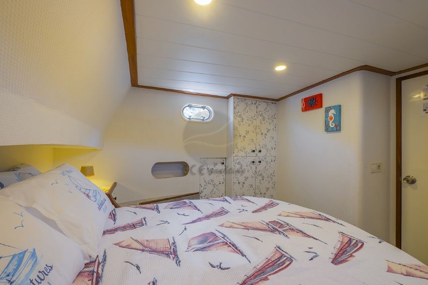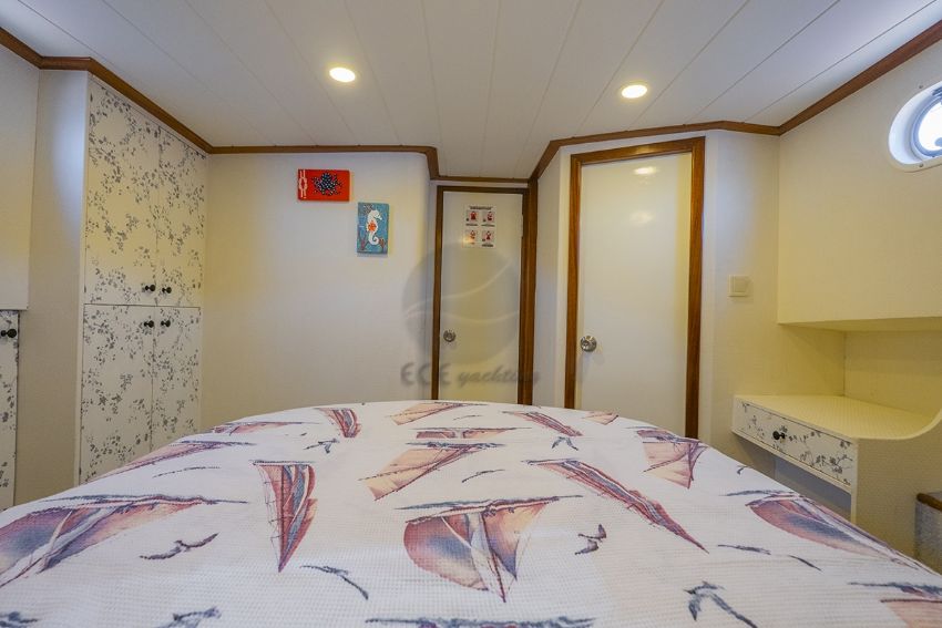 12 metre uzunluğunda olan 2 kabinli teknemiz, 4 kişiye kadar olan nezih misafirlerimiz için mavi tur yolculuklarında öncelikli tercihiniz olacaktır. Teknemiz, mavi yolculuk tatil planlarınız için deneyimli ekibiyle kalite ve konforu bir arada sunmaktadır.