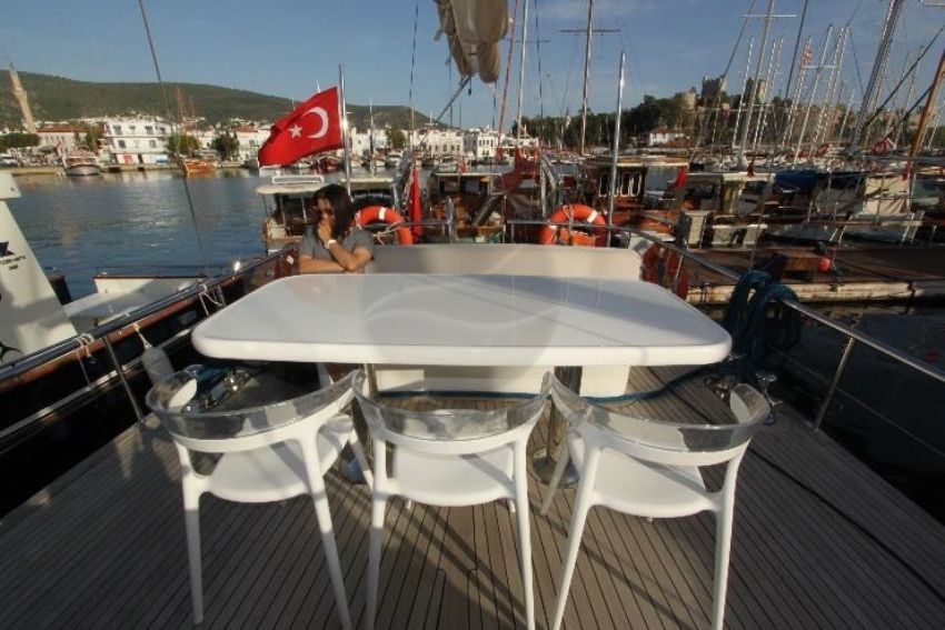 Şnorkel ekipmanları, Balık tutma malzemeleri, Güneş tenteleri, Güneş yatakları, Güvertede duş, Deniz merdiveni