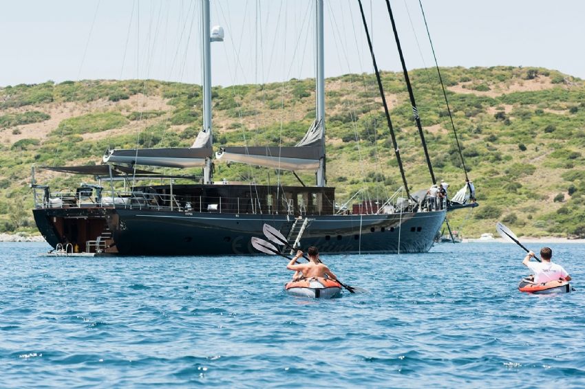 Dalış malzemeleri, Balık tutma malzemeleri, Güneş tenteleri, Güneş yatakları, Güvertede duş, Deniz merdiveni