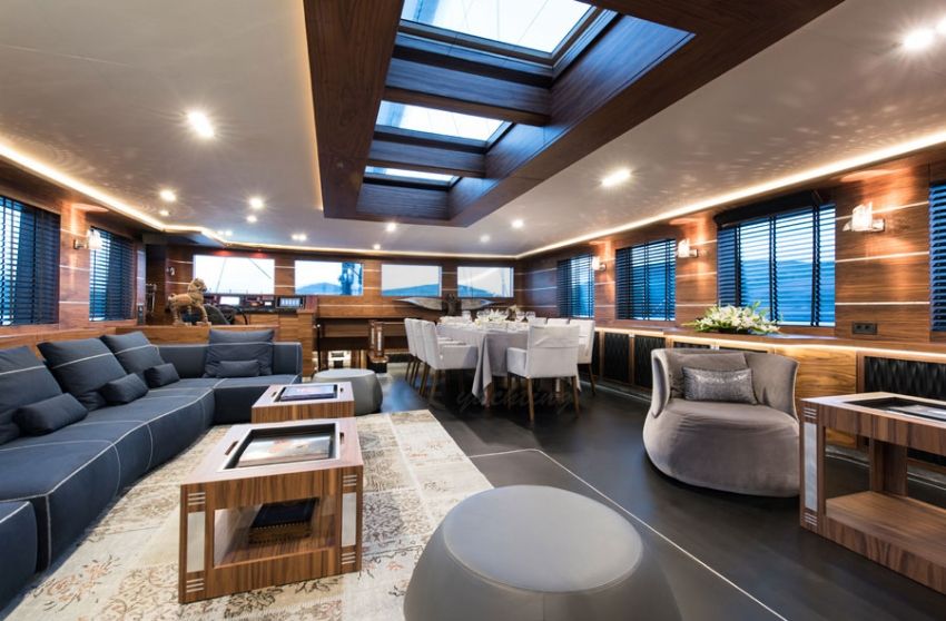 Salon, kabinler ve güverte de