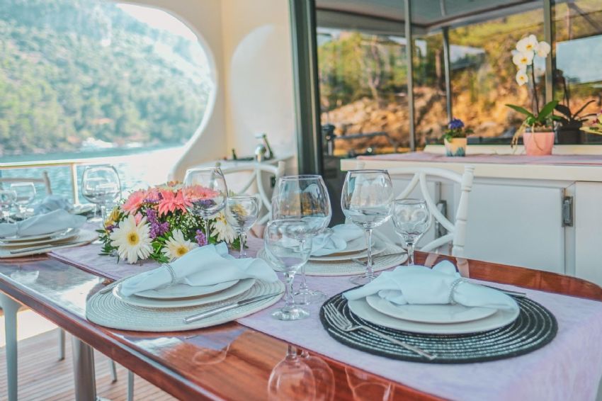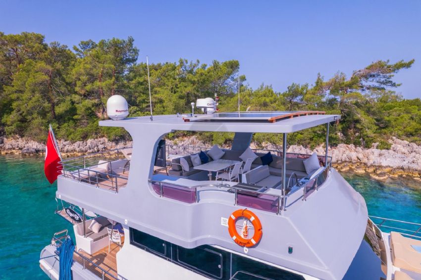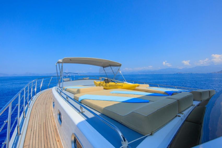 Şnorkel ekipmanları, Balık tutma malzemeleri, Güneş tenteleri, Güneş yatakları, Güvertede duş, Deniz merdiveni