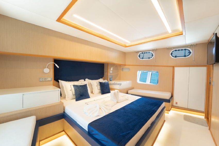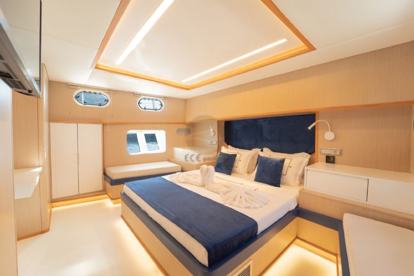 Var - Her kabinde - Salonda - Arka güverte ve arka yemek/oturma ve flybridge alanlarında