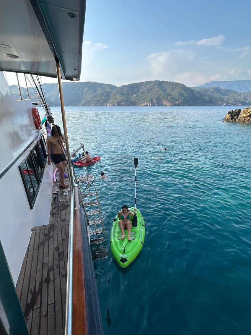 Şnorkel ekipmanları, Balık tutma malzemeleri, Güneş tenteleri, Güneş yatakları, Güvertede duş, Deniz merdiveni