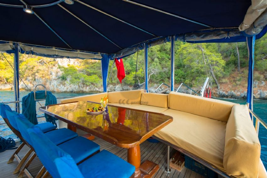 Şnorkel ekipmanları, Balık tutma malzemeleri, Güneş tenteleri, Güneş yatakları, Güvertede duş, Deniz merdiveni