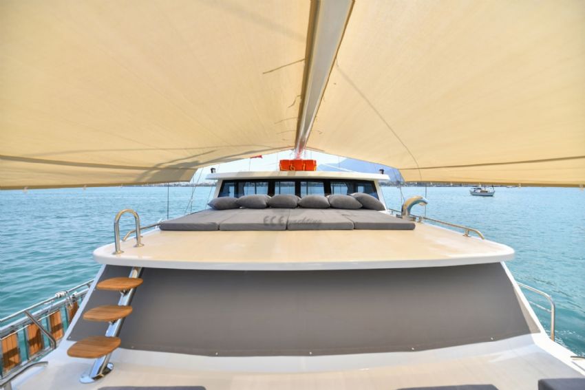 Şnorkel ekipmanları, Balık tutma malzemeleri, Güneş tenteleri, Güneş yatakları, Güvertede duş, Deniz merdiveni