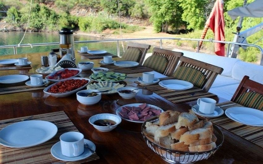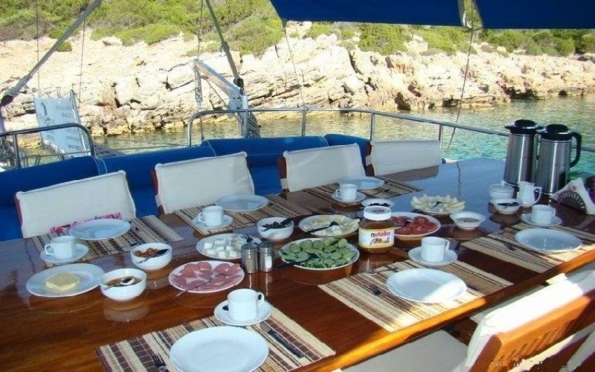 Şnorkel ekipmanları, Balık tutma malzemeleri, Güneş tenteleri, Güneş yatakları, Güvertede duş, Deniz merdiveni