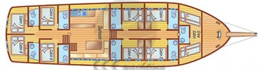 Ekonomik ve klimalı guletler kategorisinde mavi yolculuk hizmeti veren teknemiz, 2012 yılında revize edilmiştir. 24 metre uzunluğundaki teknemizde, 8 kabin bulunmaktadır. 3 kişilik deneyimli mürettebatının sizlere tatiliniz boyunca eşlik edeceği Sherpa, emsallerine göre uygun fiyat avantajları sunmaktadır. Sherpa Gulet Yat