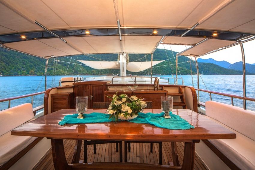 Maske, palet, şnorkel, Balık tutma malzemeleri, Güneş tenteleri, Güneş yatakları, Güvertede duş, Deniz merdiveni