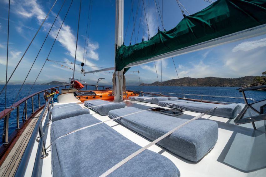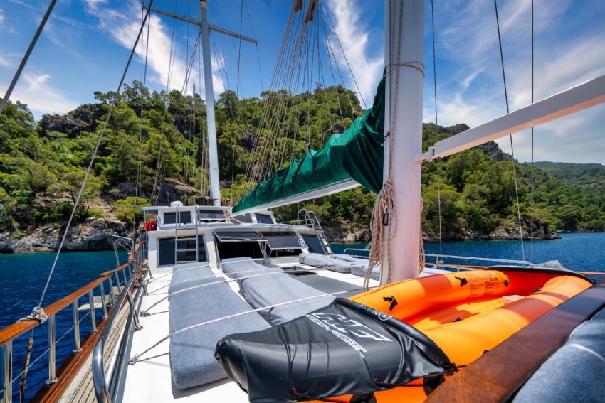 Şnorkel ekipmanları, Balık tutma malzemeleri, Güneş tenteleri, Güneş yatakları, Güvertede duş, Deniz merdiveni