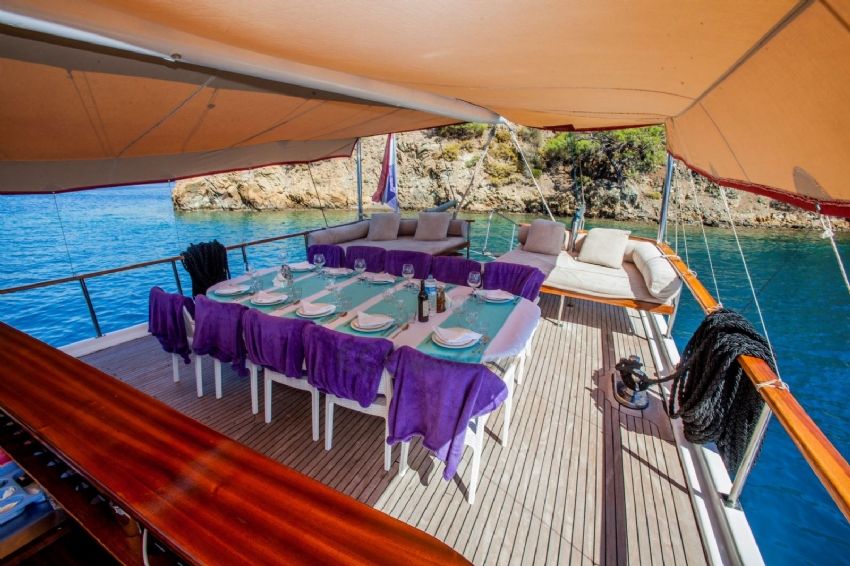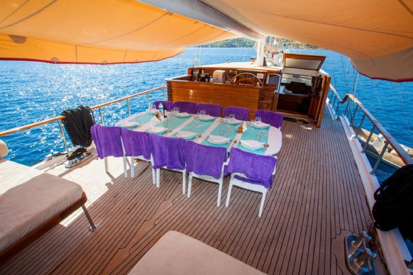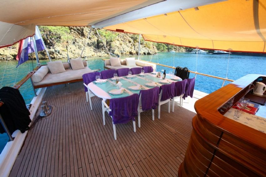 Şnorkel ekipmanları, Balık tutma malzemeleri, Güneş tenteleri, Güneş yatakları, Güvertede duş, Deniz merdiveni