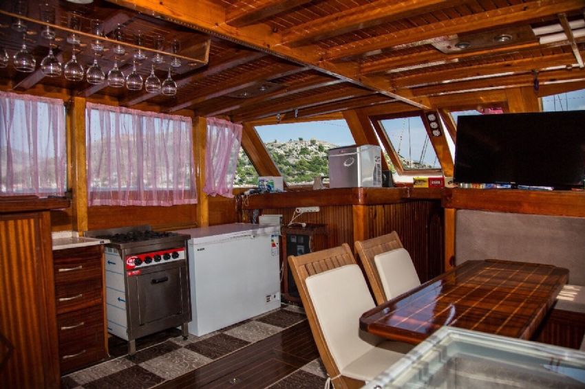 Bar, Salon yemek masası, Ön güverte oturma alanı, Konforlu oturma alanları, Klasik mobilyalı, Tam donanımlı