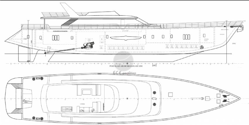 Şnorkel ekipmanları, Balık tutma malzemeleri, Güneş tenteleri, Güneş yatakları, Güvertede duş, Deniz merdiveni
