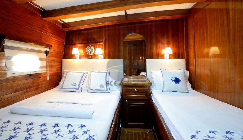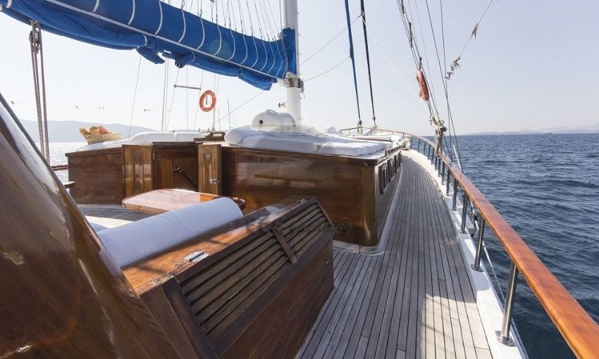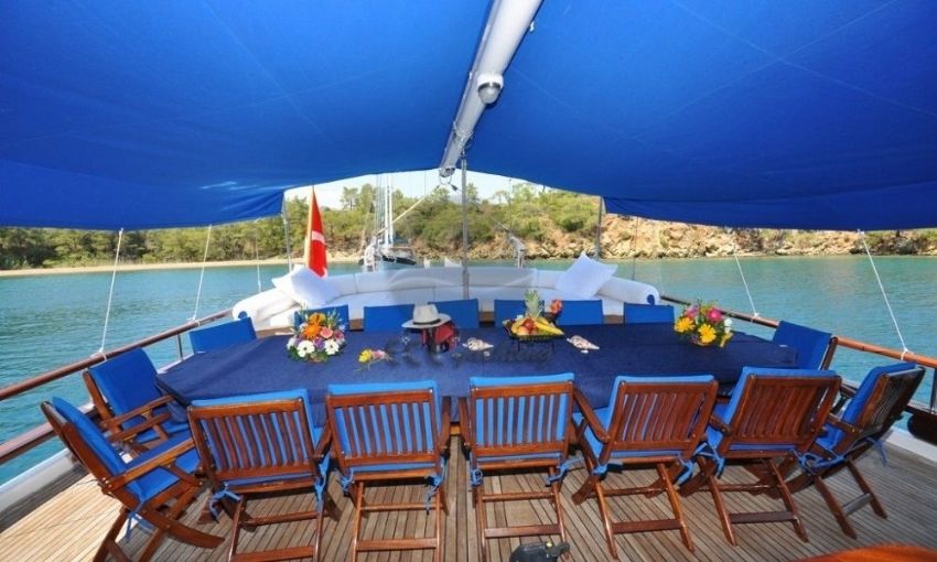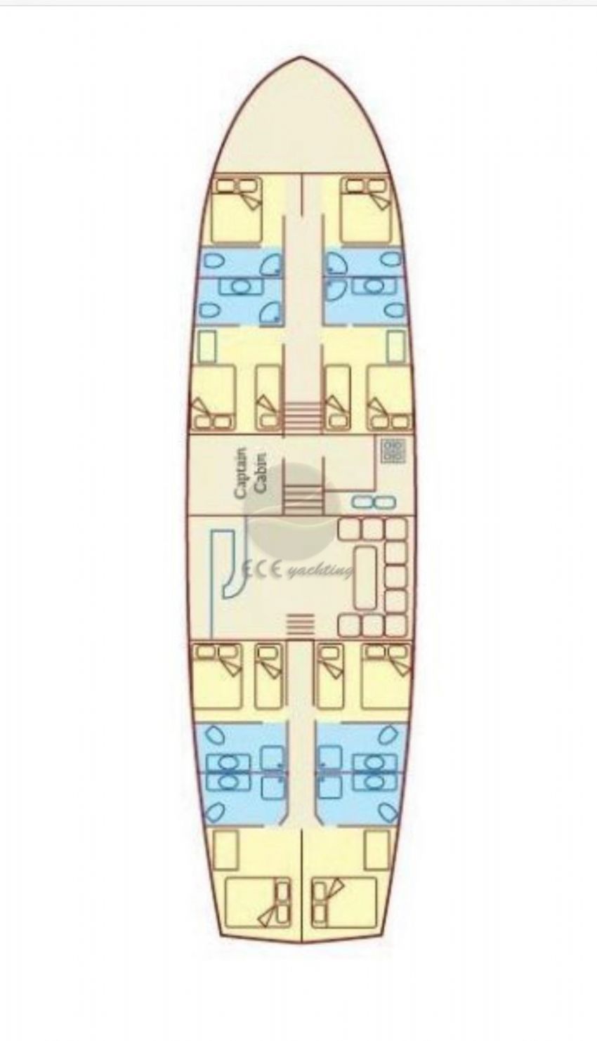 Dalış malzemeleri, Balık tutma malzemeleri, Güneş tenteleri, Güneş yatakları, Güvertede duş, Deniz merdiveni