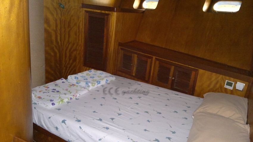 Düz güverte olan standart teknemizde önde ve arkada geniş oturma alanları ve yemek masalarımız bulunmaktadır. Deniz merdivenimiz sayesinde rahat bir şekilde denize girme fırsatı bulabileceğiniz teknemiz, 2011 yılında revize edilip konforlu bir halde hizmetinize sunulmuştur. Normalde 8 kabini bulunan teknemizde 4 kabininde 2 ortak banyo kullanımından dolayı, 6 kabin olarak öneriyoruz. Teknemiz çocuklu aileler için 16 kişi konaklamaya da müsaittir. Suvari Yatı