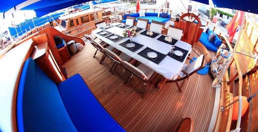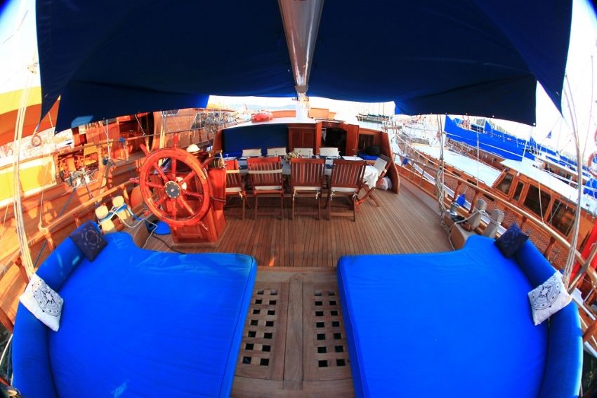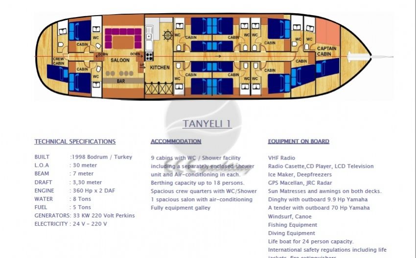 Şnorkel ekipmanları, Balık tutma malzemeleri, Güneş tenteleri, Güneş yatakları, Güvertede duş, Deniz merdiveni