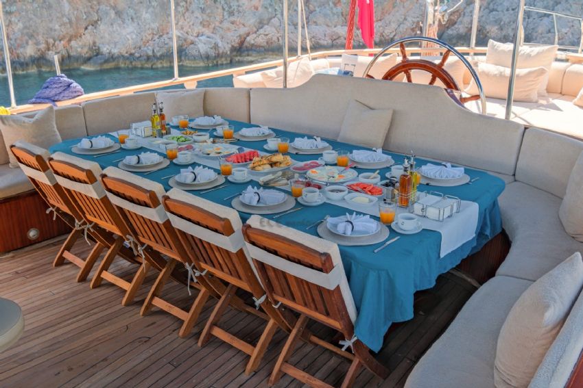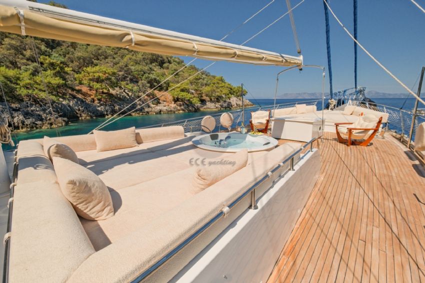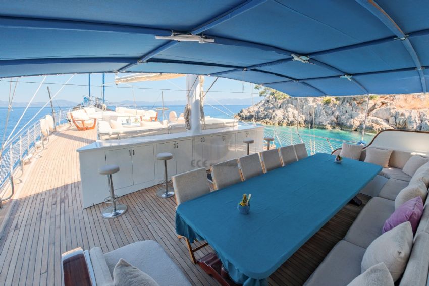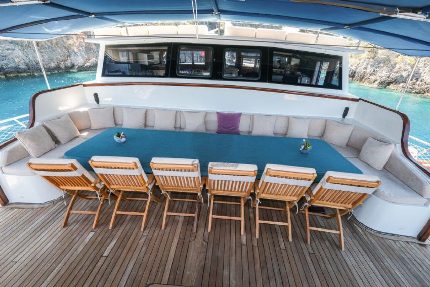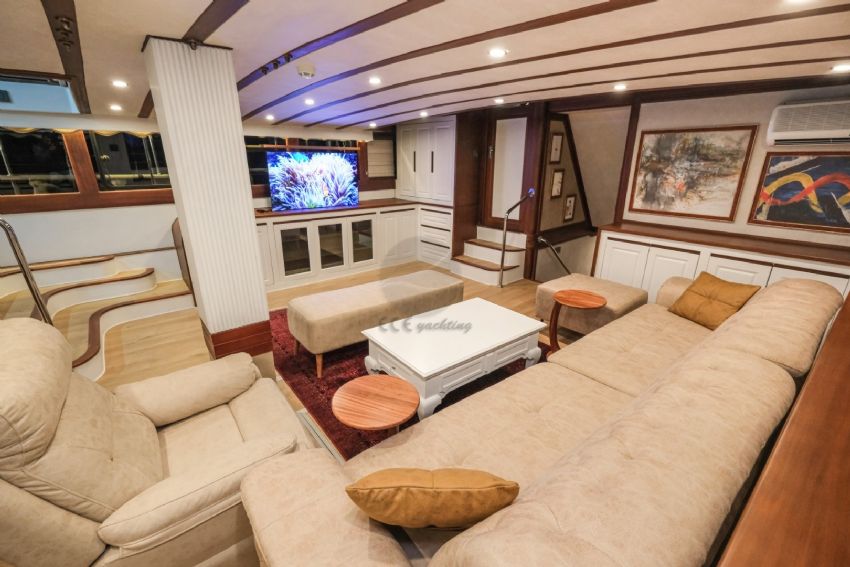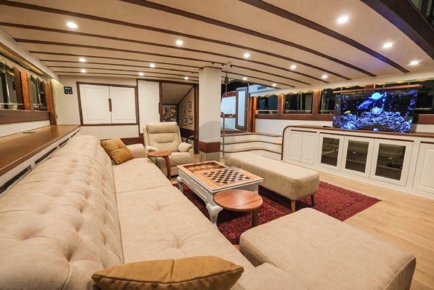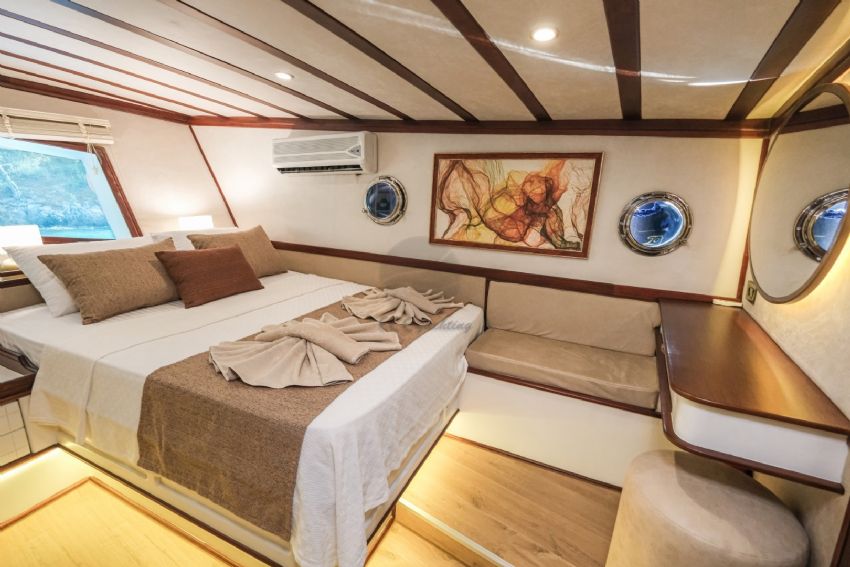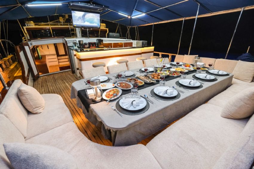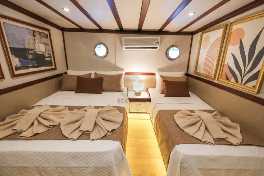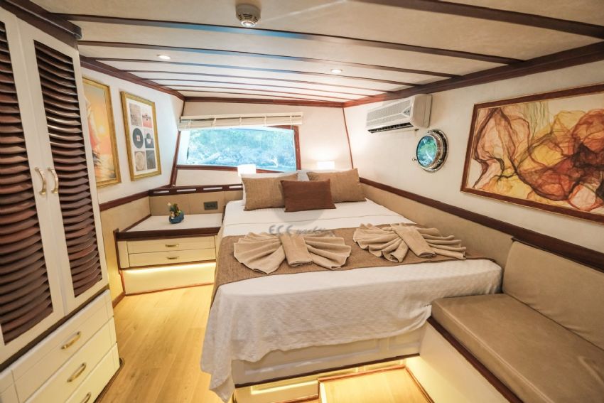 2024 yılında revize edilen lüks teknemiz, mavi yolculuk tatiliniz boyunca ihtiyacınız olabilecek her detay düşünülerek donatılmıştır. Her biri alanında deneyimli ve güler yüzlü mürettebatımız misafir memnuniyeti odaklı hizmet vermektedir. Hava ve deniz koşulları uygun olduğunda yelken seyri de yapabileceğiniz teknemiz, 18 kişiye kadar olan nezih gruplarınızı ağırlayabilme kapasitesine sahiptir. Tarkan 5 Yatı.