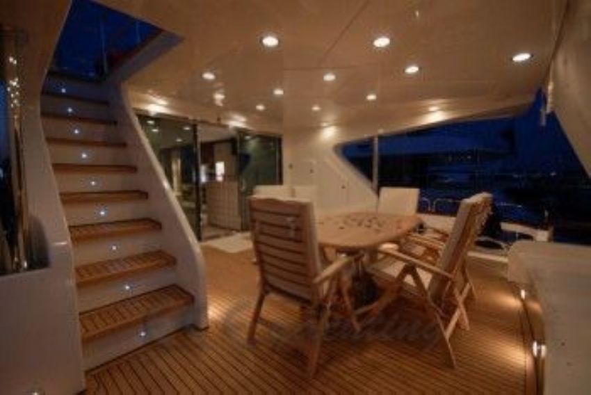 Dalış malzemeleri, Balık tutma malzemeleri, Güneş tenteleri, Güneş yatakları, Güvertede duş, Deniz merdiveni