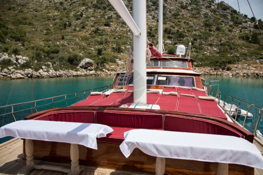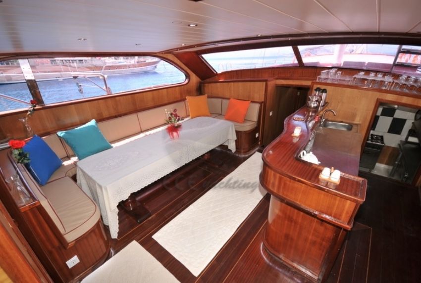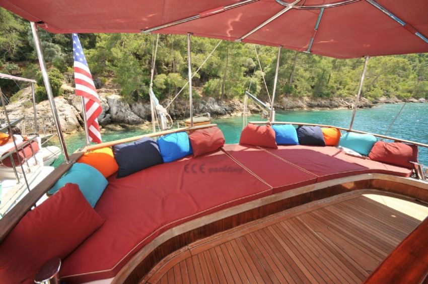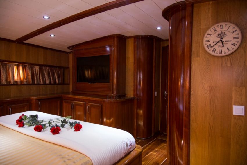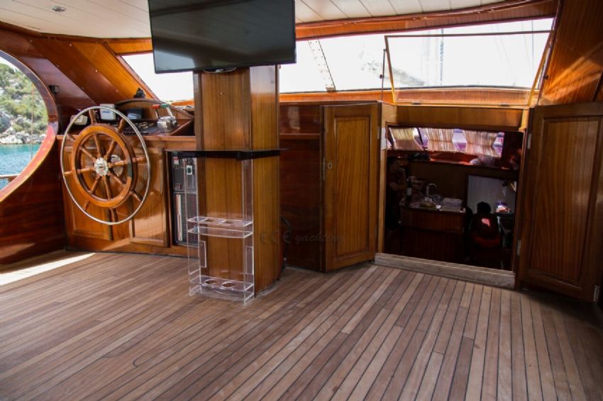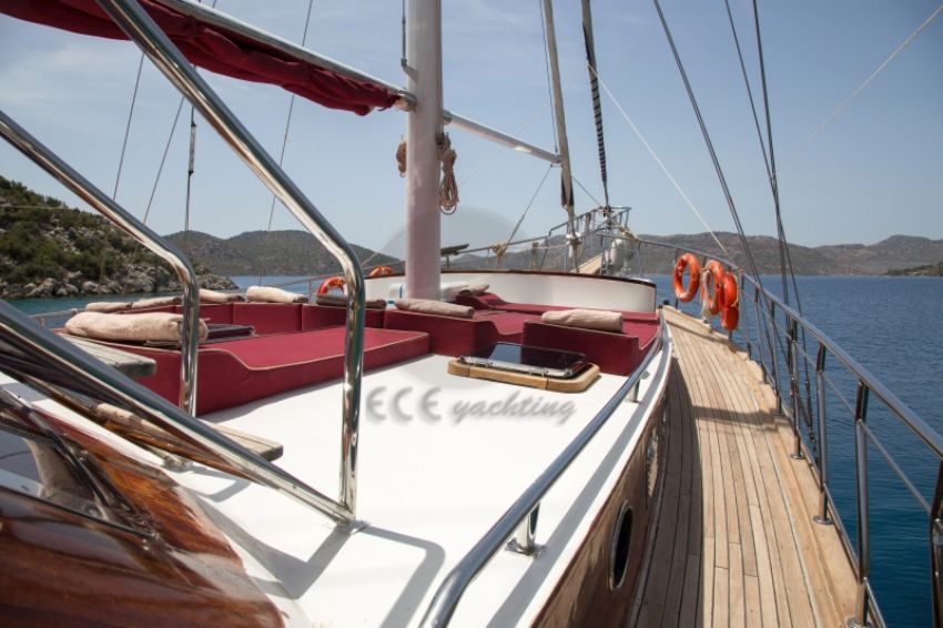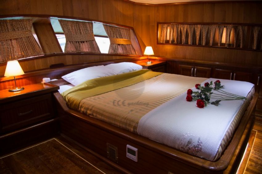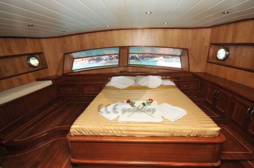 2016 yılında baştan aşağıya yenilenen de lüks sınıf teknemizde 2 master, 2 dbl kamara bulunmaktadır. Tüm limanlardan hareketli olarak mavi tur yapabilen teknemizde 4 kişilik mürettebat hizmet vermektedir. Teknemiz mavi yolculuğun kalbi olan Ege ve Akdeniz'de 8 kişiye kadar olan gruplara hizmet verebilmektedir. Teknemizin salon ve tüm kamaralarında televizyon ve uydu sistemi mevcuttur. Teknemizin tüm kamaralarında duşakabin ve WC yer alır. 70 Hp güce sahip Joker marka botumuz ile sadece yakıt ücretlerini ödeyerek su kayağı yapabilirsiniz. Teknemizde 1 adet kano vardır.