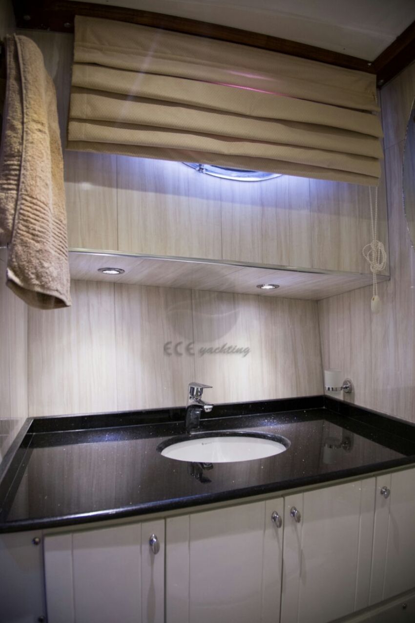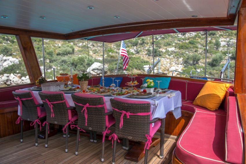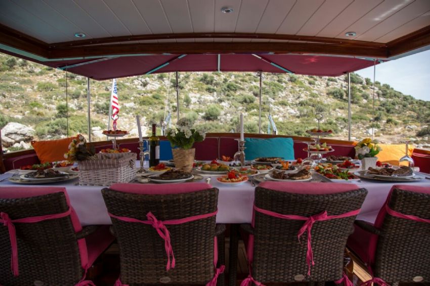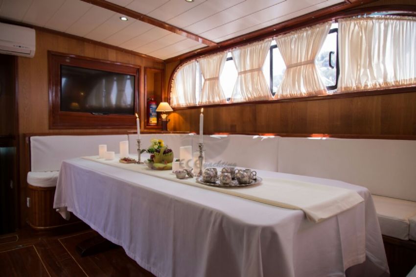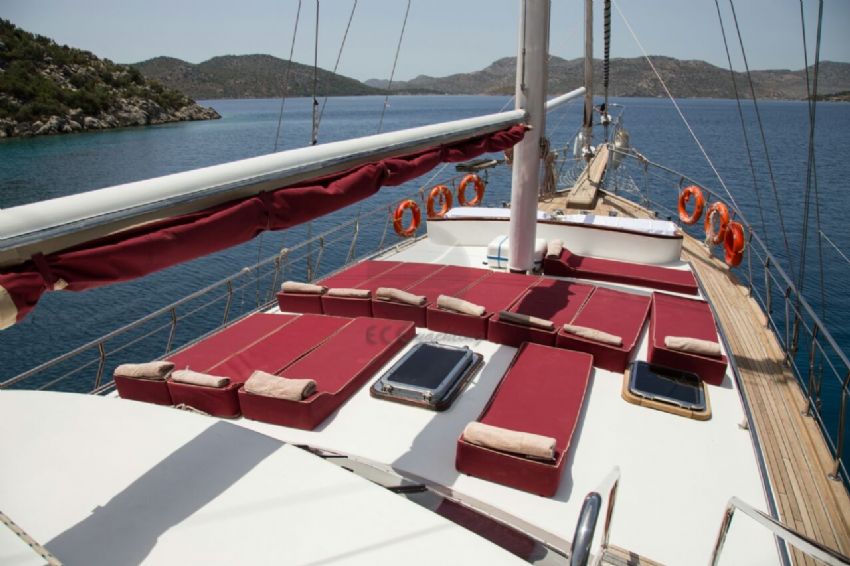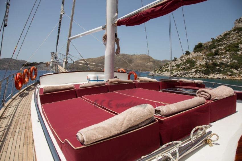 2016 yılında baştan aşağıya yenilenen de lüks sınıf teknemizde 2 master, 2 dbl kamara bulunmaktadır. Tüm limanlardan hareketli olarak mavi tur yapabilen teknemizde 4 kişilik mürettebat hizmet vermektedir. Teknemiz mavi yolculuğun kalbi olan Ege ve Akdeniz'de 8 kişiye kadar olan gruplara hizmet verebilmektedir. Teknemizin salon ve tüm kamaralarında televizyon ve uydu sistemi mevcuttur. Teknemizin tüm kamaralarında duşakabin ve WC yer alır. 70 Hp güce sahip Joker marka botumuz ile sadece yakıt ücretlerini ödeyerek su kayağı yapabilirsiniz. Teknemizde 1 adet kano vardır.