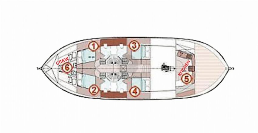 Şnorkel ekipmanları, Balık tutma malzemeleri, Güneş tenteleri, Güneş yatakları, Güvertede duş, Deniz merdiveni