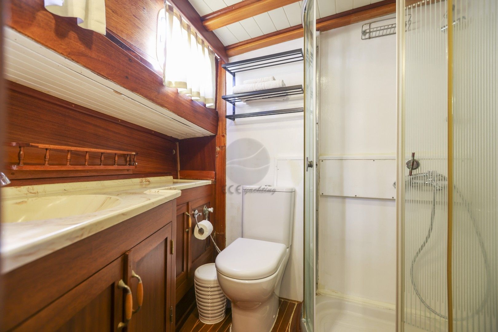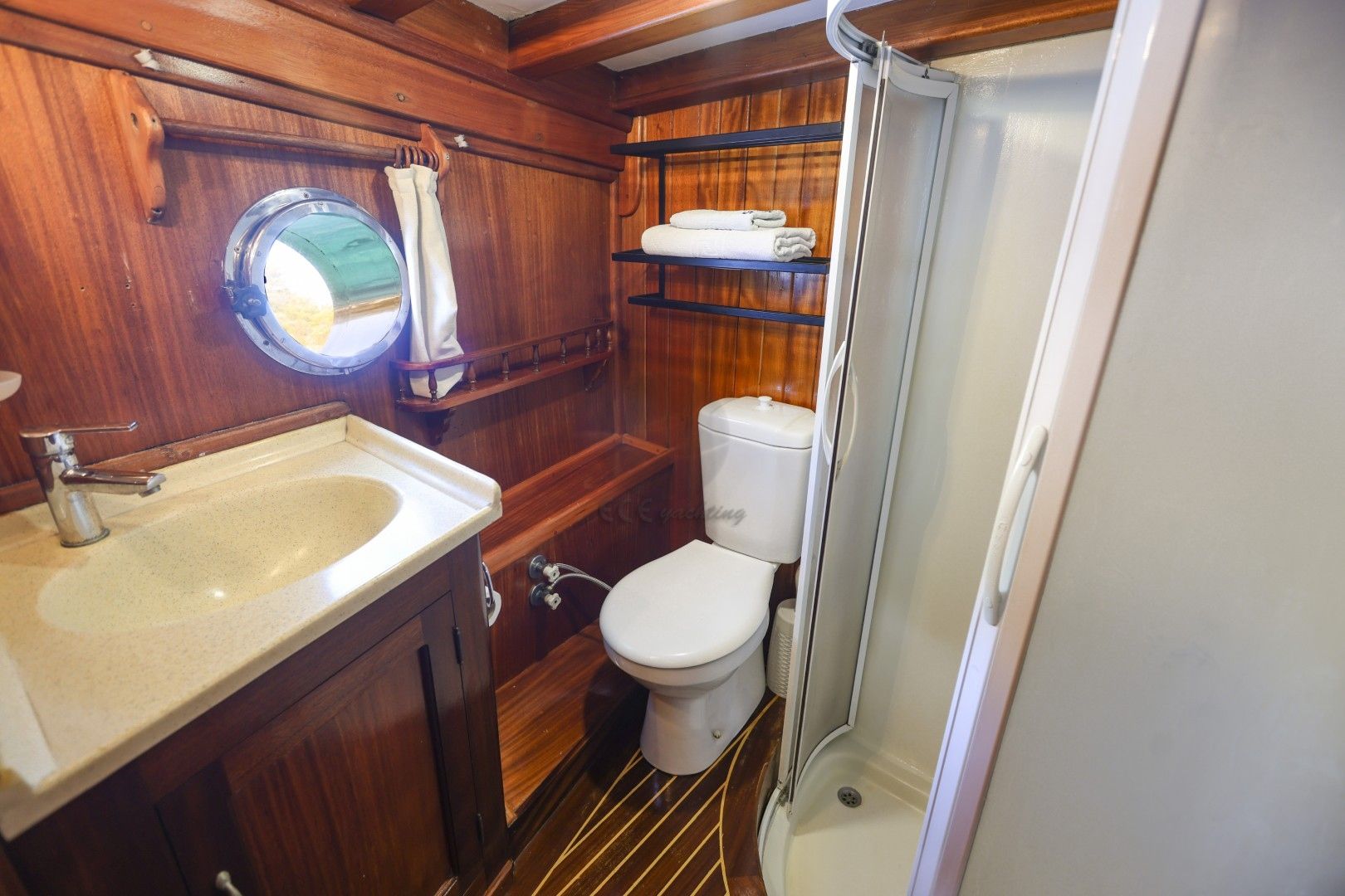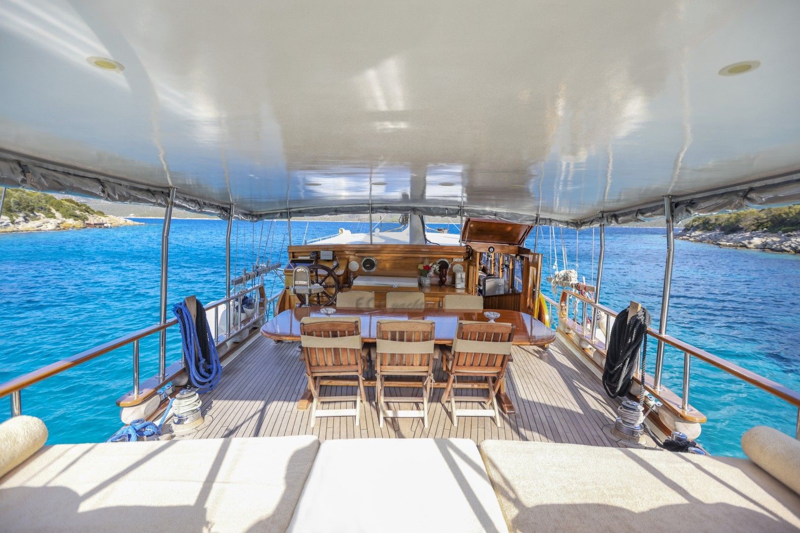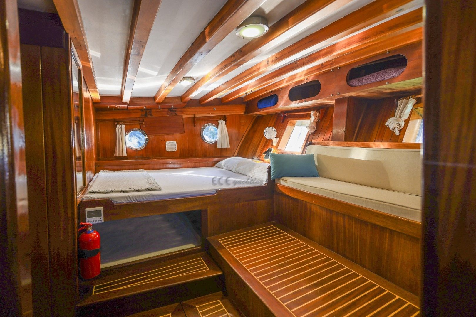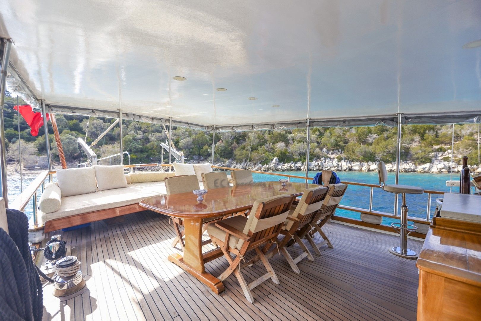 Dalış malzemeleri, Balık tutma malzemeleri, Güneş tenteleri, Güneş yatakları, Güvertede duş, Deniz merdiveni