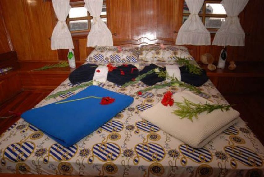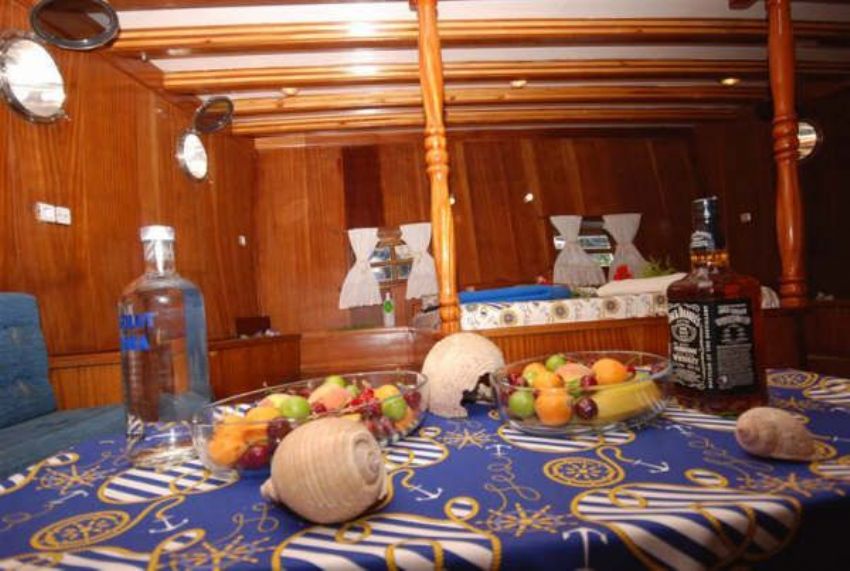 Dalış malzemeleri, Balık tutma malzemeleri, Güneş tenteleri, Güneş yatakları, Güvertede duş, Deniz merdiveni