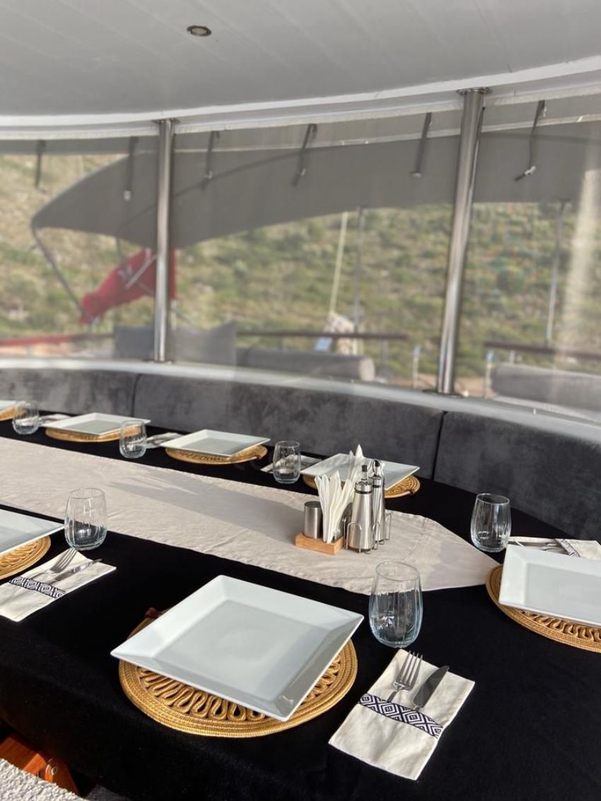 Şnorkel ekipmanları, Balık tutma malzemeleri, Güneş tenteleri, Güneş yatakları, Güvertede duş, Deniz merdiveni
