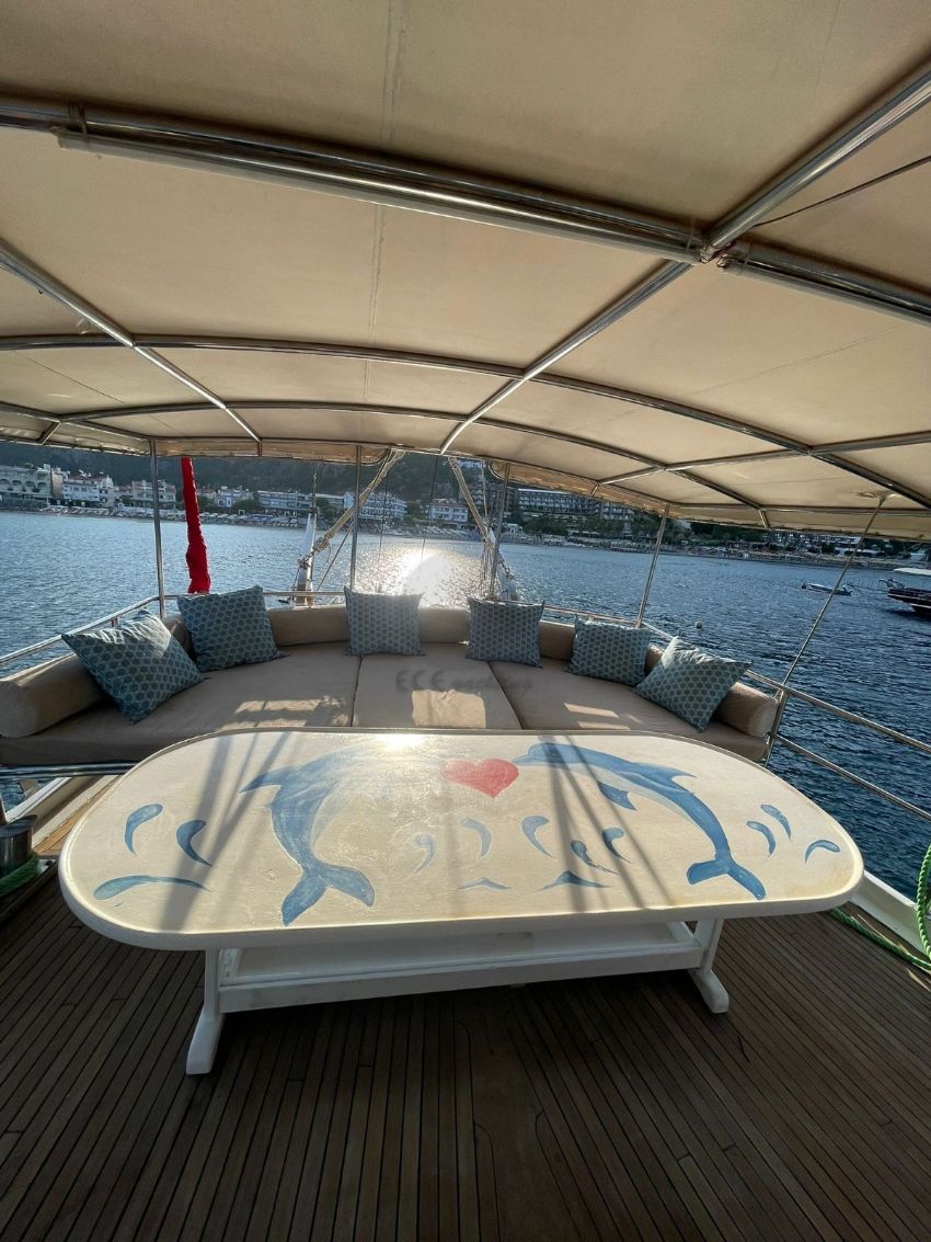 Dalış malzemeleri, Balık tutma malzemeleri, Güneş çadırları, Güneş yatakları, Güvertede duş, Deniz merdiveni