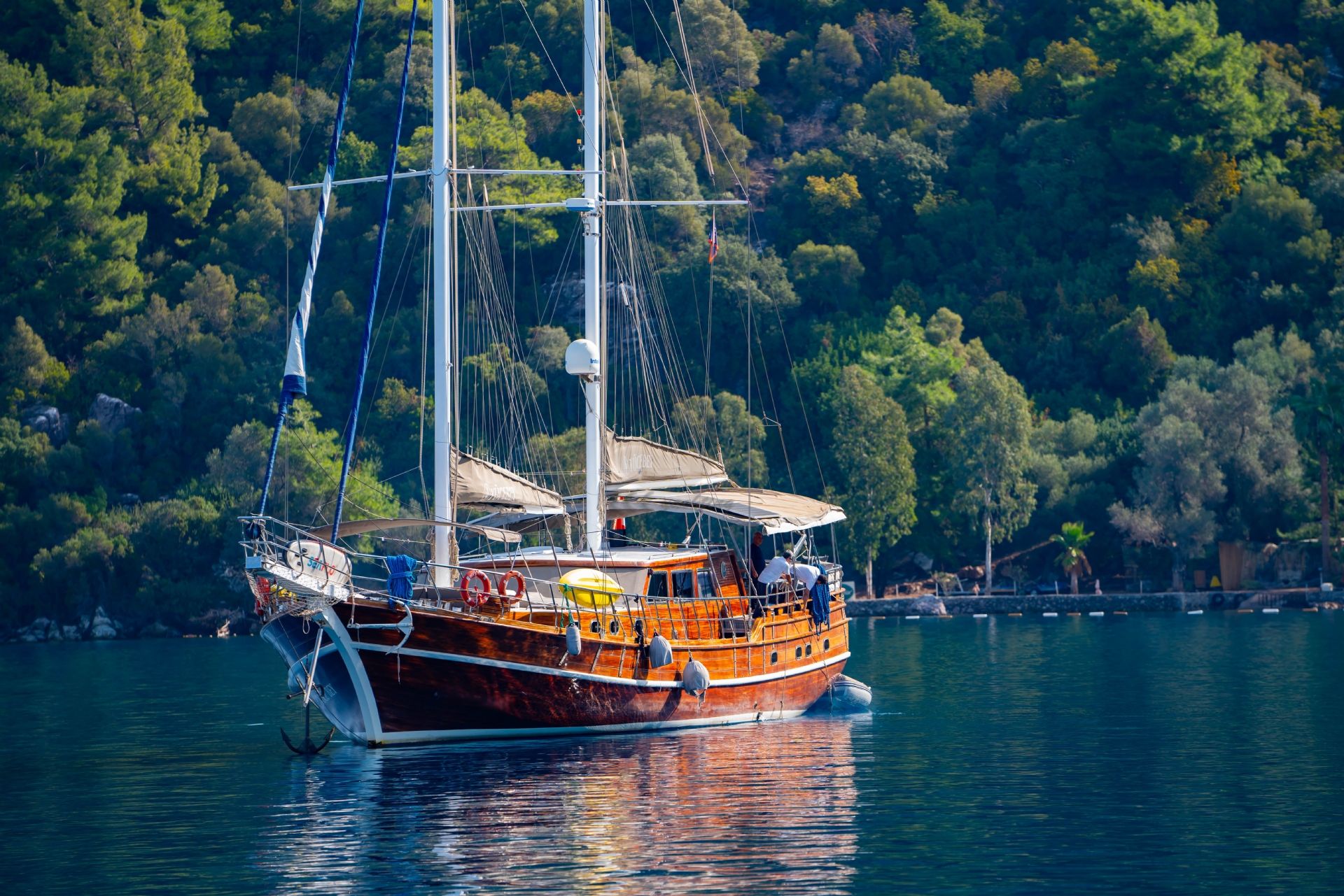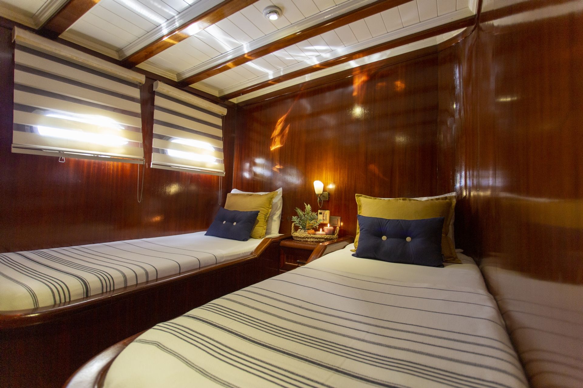 24 Metre uzunluğunda ve 6,80 metre eninde olan 5 kabinli lüks yatımız, fiyat performans anlamında iyi servis alacağınız ve hijyen konusunda beklentilerinizi karşılayacak şekilde hizmetinize sunulmuştur. Kabinleri, şık ve konforludur. Lüks yatımız genellikle Bodrum, Marmaris, Göcek başlangıçlı, Gökova / Hisarönü körfezi / Göcek Adaları / Datça rotalarında hizmet vermektedir.