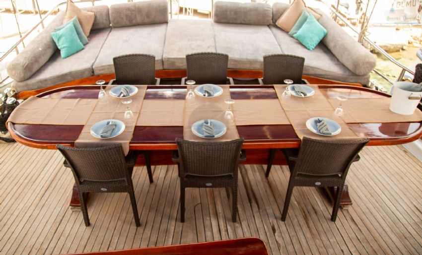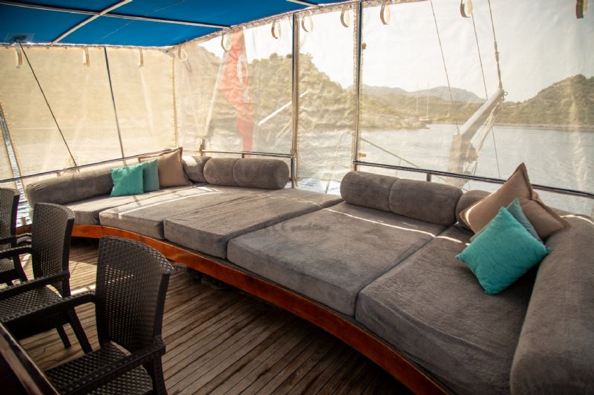 Dalış malzemeleri, Balık tutma malzemeleri, Güneş tenteleri, Güneş yatakları, Güvertede duş, Deniz merdiveni